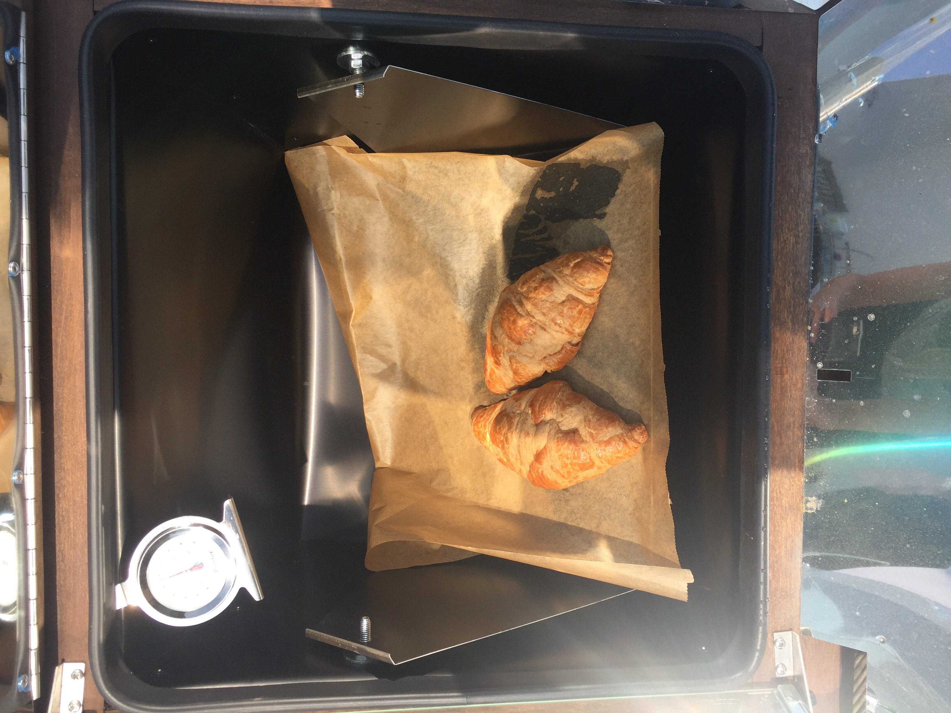 Wir nutzen den Sunoven tatsächlich im Sommer für alles, was üblicherweise im Backofen gebacken wird. So backen wir Brot, Kuchen, Croissants, aber auch Gemüsequiches und Aufläufe und das Beste: Wenn man den Ofen so ausrichtet, das morgens die Sonne darauf scheint, erwarten einen frische warme Croissants zum Frühstück.